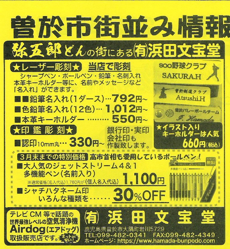 私たちは曽於市大隅町岩川の 有限会社 浜田文宝堂 と申します。