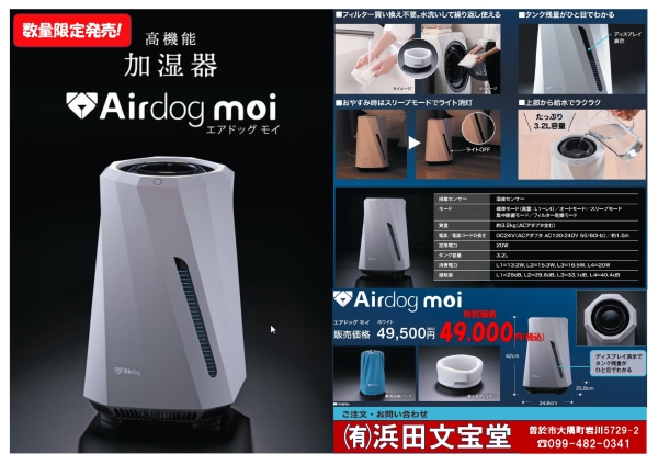 高機能「気化式」加湿器【エアドッグ モイ】数量限定にて発売中! 高機能「気化式」加湿器【エアドッグ モイ】数量限... 2025.11.28 -