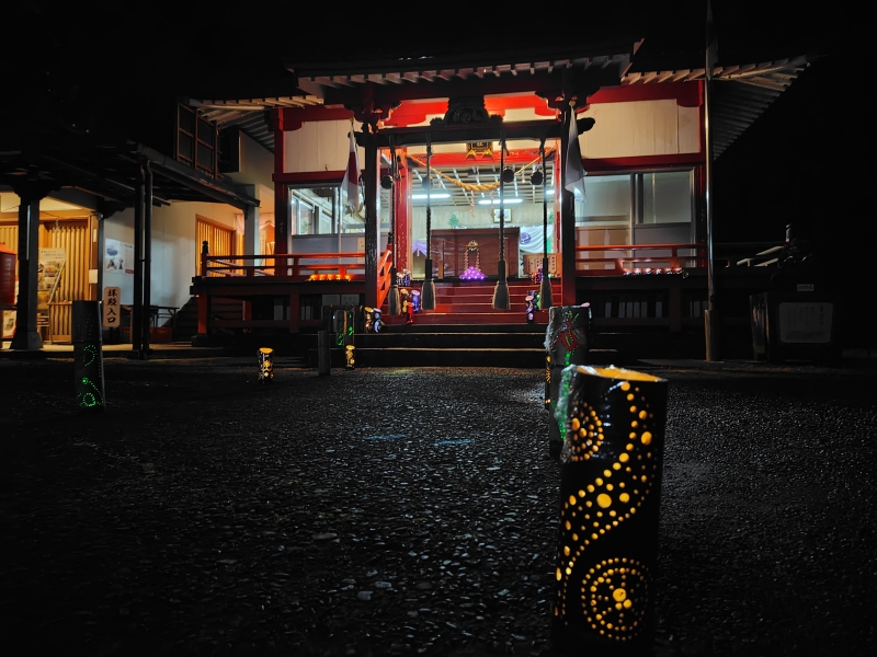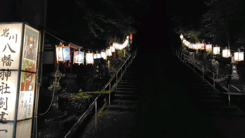 幻想的な雰囲気に中、素敵な音楽に包まれ、岩川八幡神社「灯籠祭り」開催中です!
