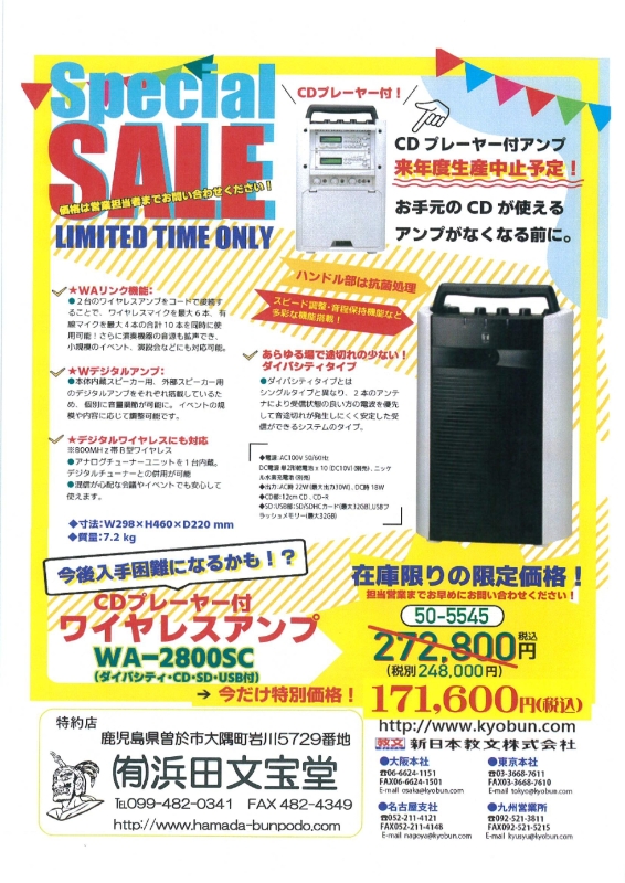 持ち運びに便利な♪CDプレーヤー付ワイヤレスアンプ(^^♪生産中止前の特別価格